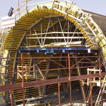 Für die als Lärmschutzmaßnahme gedachte Einhausung der Bahnstrecke bei Grafenstein setzte die bauausführende Massivbau einen 24 m langen Doka-Tunnelschalwagen ein. Die Einhausung musste als wasserdichtes Bauwerk in der Qualität einer weißen Wanne hergestellt werden, 24 m „Weiße Wanne“ konnten dabei im Wochentakt hergestellt werden.