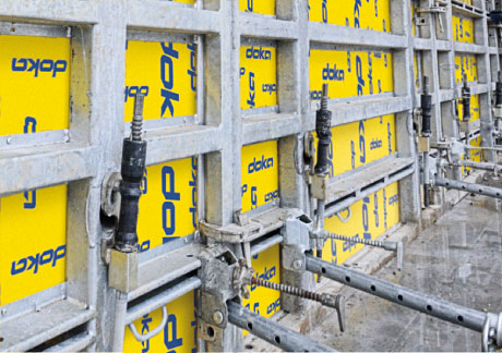 Horizontal stacking with only a few standard panels thanks to square-shaped basic element. The well thought-out system logic creates a well-arranged form-tie and joint pattern no matter the panel combination.