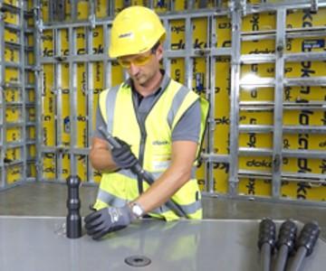 The Framax Xlife plus form tie is particularly compact and keeps both sides of the formwork safely in place. It takes only one person to thread it through the large form-tie sleeves from the side of the closing formwork and screw it into the built-in form-tie nut of the holding formwork on the opposite side.