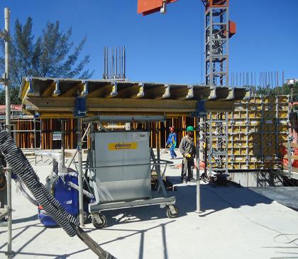 With single-sided formwork, high concrete pressures must be transferred into the concrete base slab reliably. Doka supporting construction frames combined with Doka stop anchors and Doka pigtail anchors safely absorb these forces.