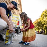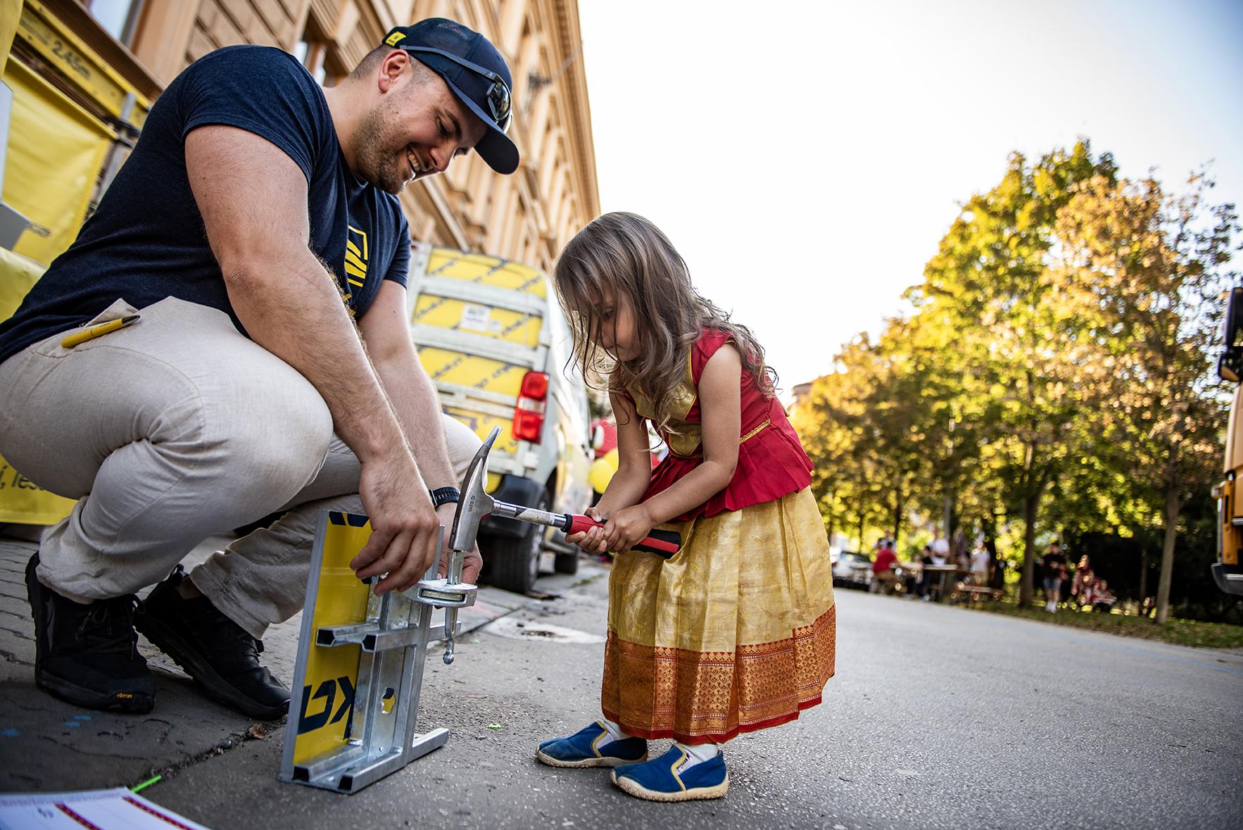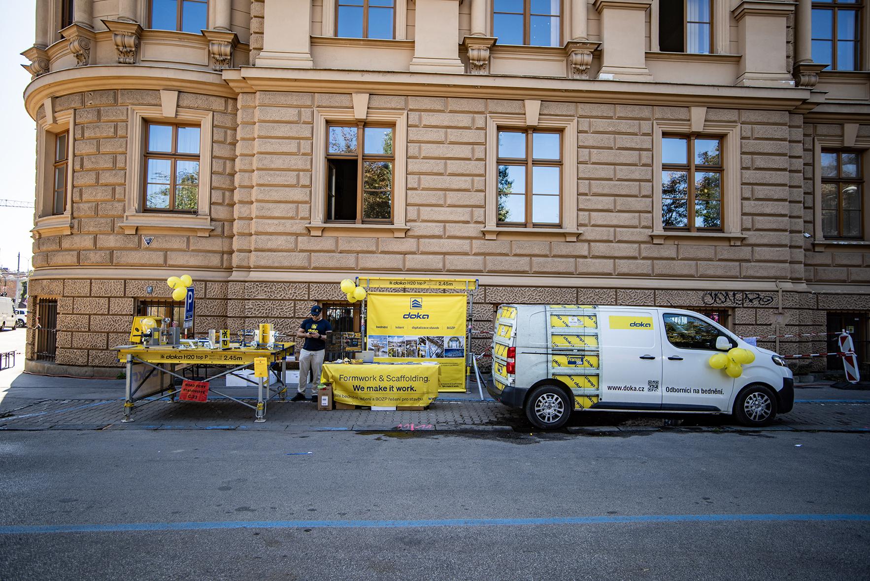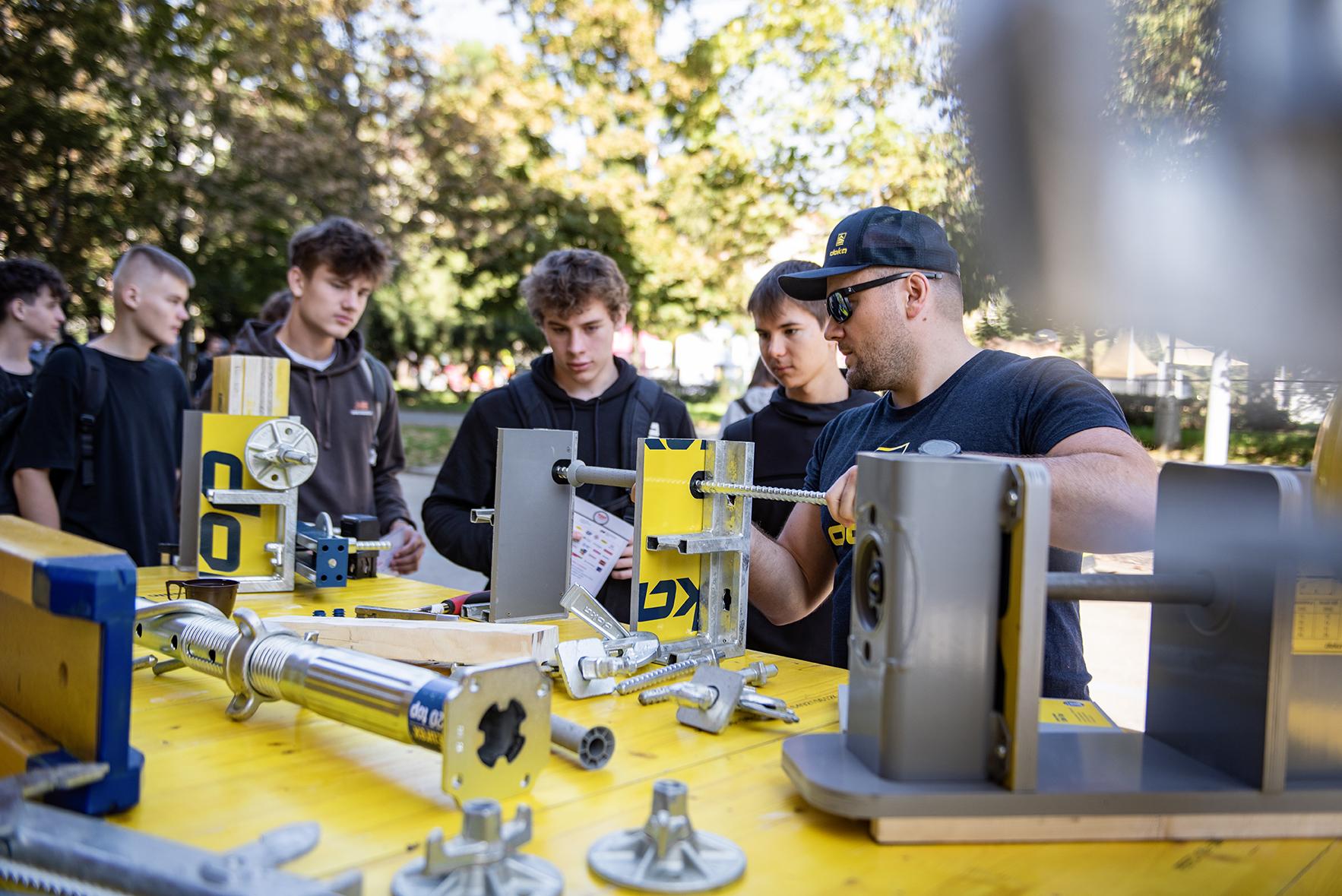 Na každém stánku čekala soutěžní disciplína – u nás si návštěvníci vyzkoušeli sepnutí rámového stěnového bednění Frami Xlife pomocí rychloupínače. Bylo skvělé vidět, jak velký zájem mají studenti o novinky v bednění, třeba o stropní systém DokaXdek nebo Framax Xlife Plus pro stěny.