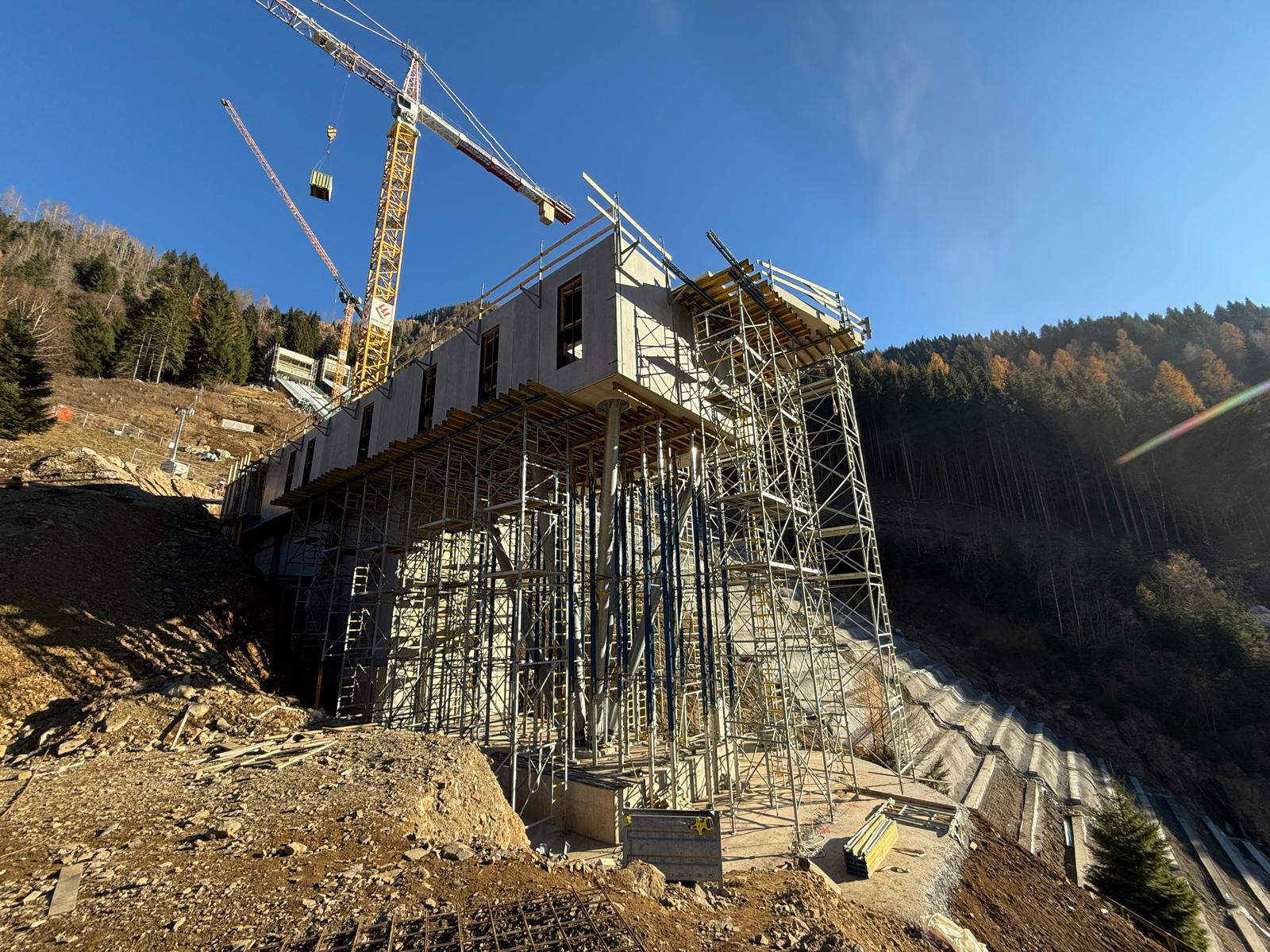 Projekt byl zahájen po demolici původních konstrukcí v roce 2022 a v první fázi zahrnoval zajištění svahu, který vykazoval problémy se stabilitou. Následovala realizace základů nových nájezdových drah, postupně shora dolů. Horské prostředí s velmi strmým svahem a omezeným pracovním prostorem vyžadovalo řešení schopná zajistit bezpečnost, přesnost a rychlost provádění.
