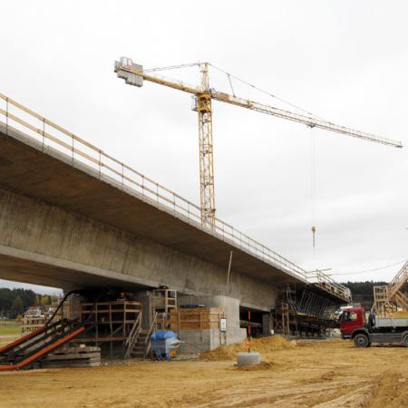 Most u Třemošné je vybudován technologií betonování na takzvaném taktovacím stole a poté kompletně vysunut do finálního postavení.