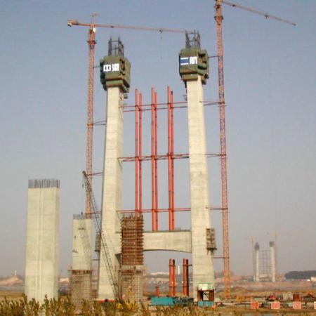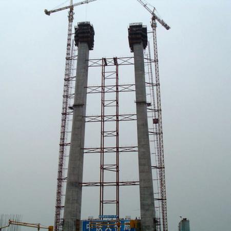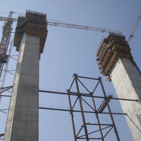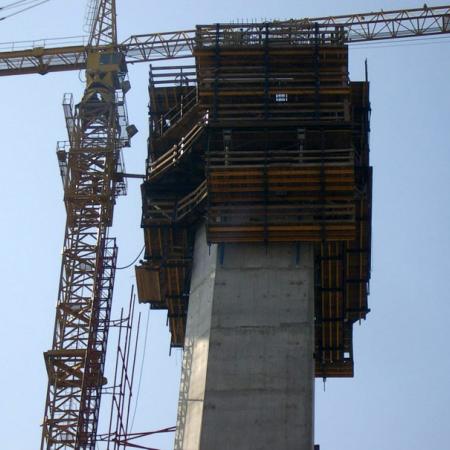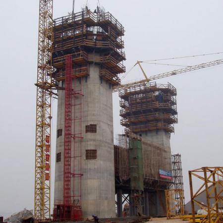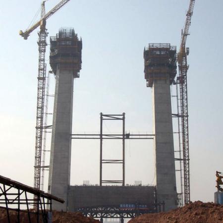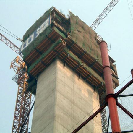 Každý z dvou čínských stavebních podniků realizoval jeden z dvou pylonů. V jednom bodě se firmy shodly: Šplhat se bude pomocí na jeřábu nezávislého samošplhacího bednění SKE 100 od Doky - Made in Austria