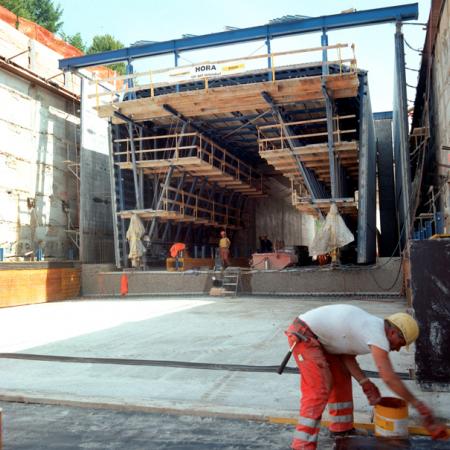 46 Etappen werden beim Tunnel Langenthal im Zuge der Bahn 2000 rechteckig betoniert, dazwischen werden auch 42 Etappen in rund erstellt. Das ergibt sich so aus den Straßenquerungen und Überdeckungshöhen. "Das spart viel, viel Geld", sagt Direktor Fritz Hasler zu der Idee der Doka Schweiz, in diesem Fall die verschiedenen Querschnitte mit einem Schalungssatz zu erstellen.