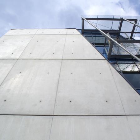 Dienstgebäude zur Regelung der 2. höchsten Trinkwassertalsperre Deutschlands. LV-Text der Ausschreibung für die SB-Fassade: Außenschale der 3-schichtigen Außenwände aus Stahlbeton, an Längsfassade als Sichtbeton der Klasse SB 3 nach Merkblatt für Sichtbeton vom August 2004
