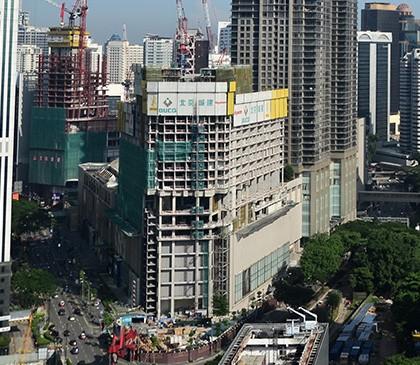 Die Kombination von Xclimb 60 und Trapezblecheinhausung ist bei schwierigen Bauwerksgeometrien ebenfalls eine bewährte Sicherheitslösung. Die flexible Dimensionierung des Schutzschildes ermöglicht eine zentimetergenaue Anpassung an jede Grundrissform. Die Abdichtung aller Zwischenräume verhindert das Herabfallen von Werkzeug und Kleinteilen und erhöht damit den Sicherheitsstandard zusätzlich.