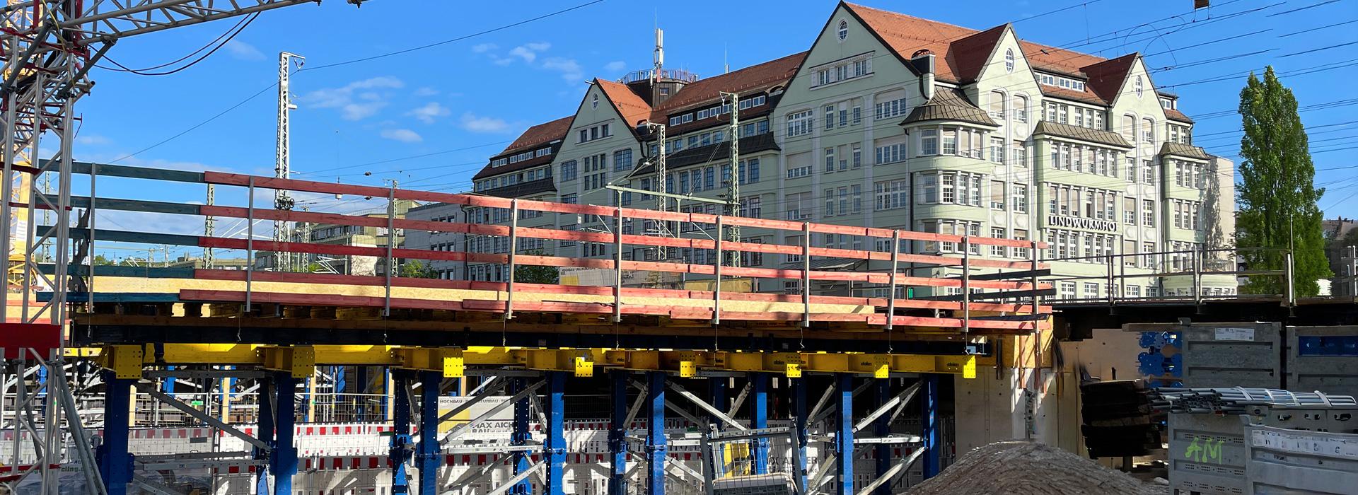 Mitten in München muss die historische, über hundert Jahre alte Eisenbahnüberführung an der Lindwurmstraße abgebrochen und durch einen Neubau ersetzt werden. Die innerstädtische Lage mit extrem beengten Platzverhältnissen ist dabei für die Baumaßnahmen ebenso herausfordernd wie die Tatsache, dass die Arbeiten bei laufendem Bahn-, und Straßenverkehr und direkt über einer U-Bahnlinie erfolgen müssen. Für eine reibungslose, termingerechte Umsetzung vertraut die Max Aicher Bau GmbH & Co. KG auf Doka. "Zum Tragen" kommt deren universeller Ingenieurbaukasten Doka UniKit, der eine flexible, belastbare Lösung für die temporäre Unterstellung und den Verschub des neuen Überbaus bietet – und dabei "die Bahn frei" hält.