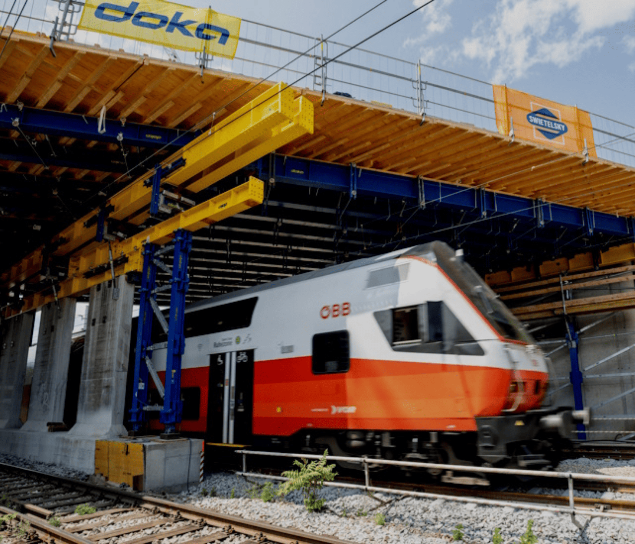 Direkt über den Bahngleisen spielte Doka UniKit, der universelle Engineering-Baukasten für schwere Lasten, seine Stärken voll aus. Die Kombination aus hoher Tragfähigkeit, flexiblen Komponenten und einfacher Anpassbarkeit an projektspezifische Gegebenheiten ermöglichte eine effiziente Abwicklung der Bauarbeiten. Das UniKit-System überzeugte dabei nicht nur durch seine Robustheit, sondern auch durch die Möglichkeit, Materialeinsatz und Montagezeiten zu optimieren – ein entscheidender Faktor für termingerechte Fertigstellungen im Gleisbereich.
