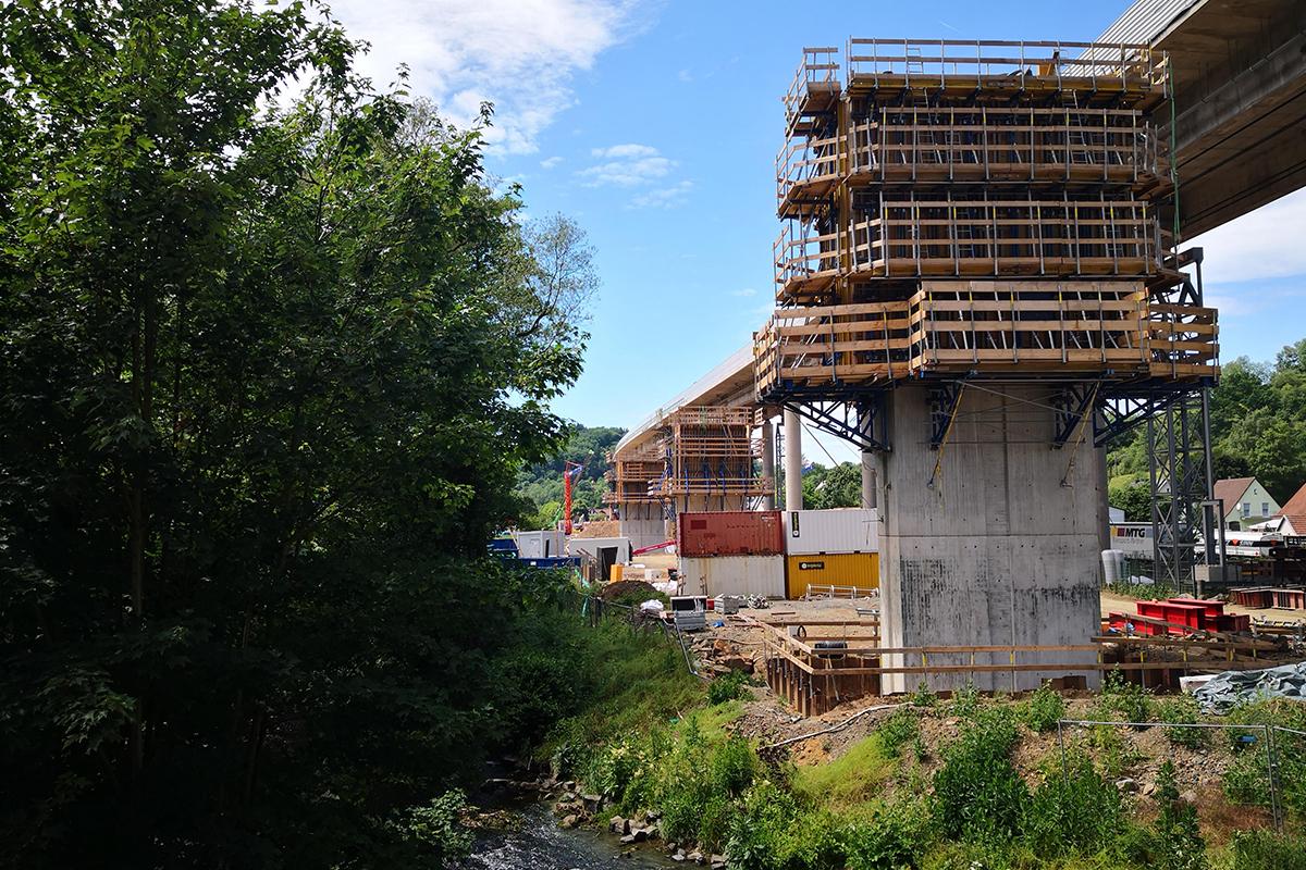 Aktuell sind mehr als 50 % der Unterbauten einer Fahrtrichtung realisiert. Der Fokus liegt momentan bei der Herstellung des Überbaus.