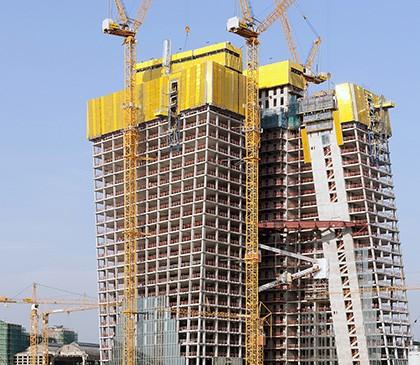 Mit der Selbstkletterschalung SKE plus gehen Sie auf Nummer sicher. Breite, rundum geschlossene Arbeitsbühnen, durchdachte Verkehrswege und die Möglichkeit einer vollflächigen Einhausung sorgen für hohe Sicherheit auf Ihrer Baustelle. Bis zu 20 Kletterautomaten können mit einem Hydraulikaggregat in den nächsten Betonierabschnitt gehoben werden.