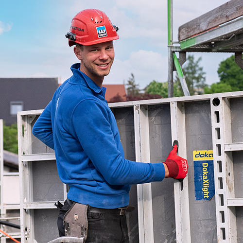 Das praxisgerechte Elementraster der DokaXlight ermöglicht eine einfache Anpassung im Grundriss und in der Höhe.