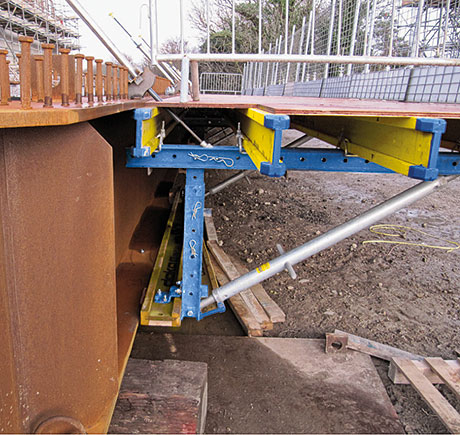 The ground-support-free cantilever arm formwork for steel-composite and pre-cast concrete bridges