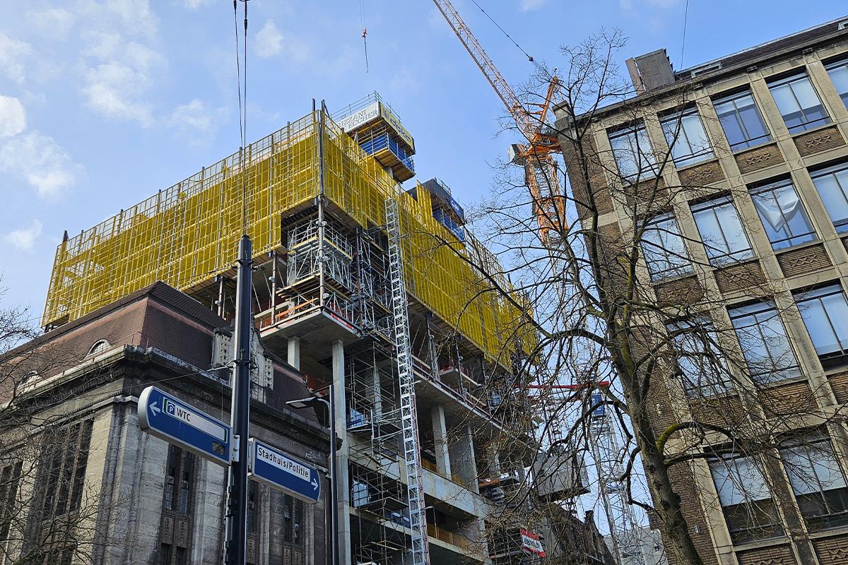In Rotterdam, the historic post office building on Coolsingel is being extensively redeveloped. The project, called 'POST', aims to transform the once derelict building into a multifunctional complex featuring a hotel, luxury flats, high-end restaurants, various retail outlets and public passageways. This ambitious project is in line with Rotterdam's vision of a greener, more accessible city centre and aims to revitalise this architectural icon and turn it into a vibrant place for residents and tourists. To ensure a high-quality construction process, the Post Bouw JV (a joint venture of Besix and Rizzani de Eccher) has chosen Doka as its formwork and scaffolding supplier.