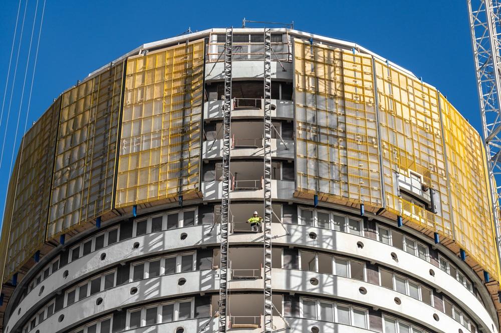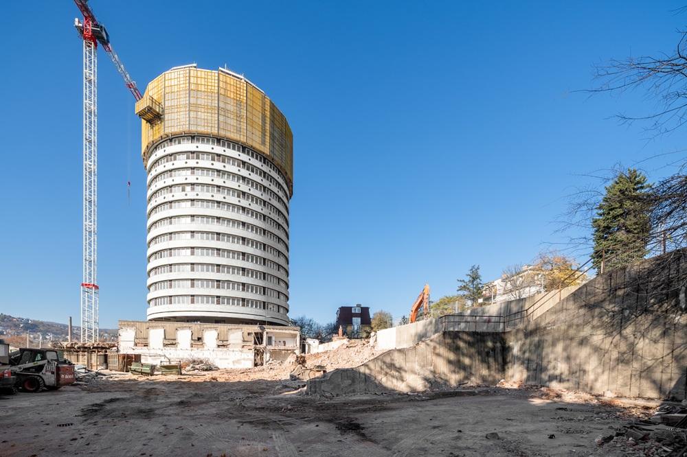 A Körszállóból újjászülető Marriott Residences Budapest megújulása újabb jelentős mérföldkőhöz érkezett: felkerült az épületre a Doka Xclimb 60 védőpajzs, amelynek telepítésével a bontási munkálatok látványos és technológiailag is összetett fázisba léptek. A kivitelezést a Market Építő Zrt., a fejlesztést pedig a Market Asset Management Zrt. valósítja meg a Marriott International együttműködésével, a magyar modern építészet egyik legikonikusabb épületének újjászületését szolgálva.