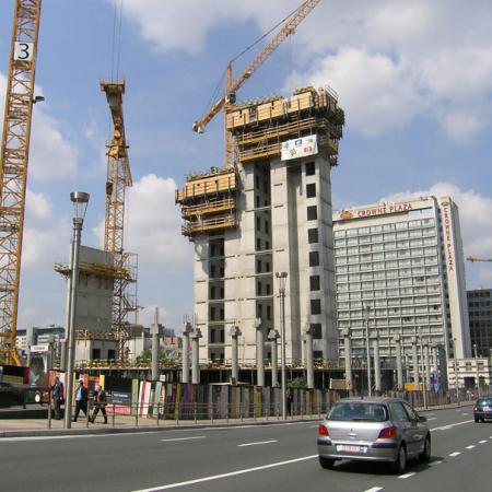 Brüsszelben 2004/05-ben 73 m magas új magasház épült. Az SKE50 plus önkúszó zsalu használatával be tudták tartani az időtervet.