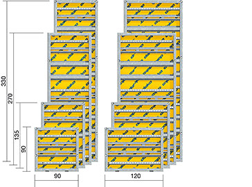 A Framax uni elem 90 és 120 cm-es szélességben, valamint 90 cm, 135 cm, 270 cm és 330 cm magasságban áll rendelkezésre.
