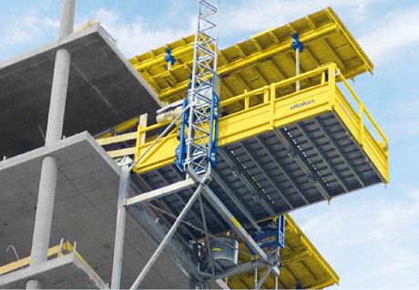 Fast construction workflows without the crane: with the Table Lifting System TLS, tableforms are brought up to the next floor at the push of a button.