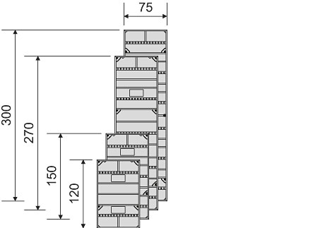 Frami universal panels are available in widths of 75 cm and 90 cm and in panel heights of 120 cm, 150 cm, 270 cm and 300 cm, for column cross-sections of up to 80 cm x 80 cm, in a 5 cm grid.