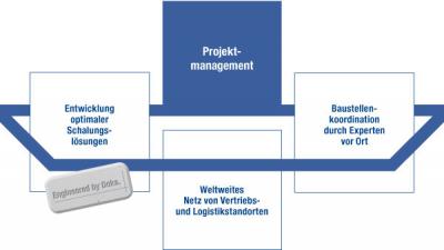 Ogni cantiere attraversa varie fasi nel corso del processo di costruzione, dalla progettazione all'ultimazione dei lavori. Avere la possibilità di essere coinvolti nel progetto fin dalla fase iniziale, significa potere comprenderlo meglio ed aumentarne l'efficienza. Possiamo accompagnare i nostri clienti in ogni fase del progetto di casseratura, perché siamo in grado di fornire prodotti, servizi, progettazione, gestione del progetto e servizi di logistica. Tutto ciò che serve da un unico fornitore! Sono poche le aziende che possono assicurare questa "comprensione di tutti gli aspetti di un progetto"!