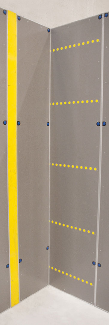 Frami Xlife ユニバーサル・パネルは、5cmグリッドで45cmの壁厚まで直角コーナーの成型に使うことができます