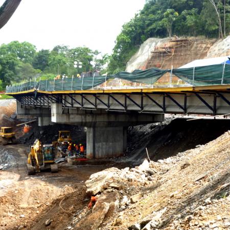 Puente con vigas prefabricadas para verter sólo el borde de la losa con grandes voladizos