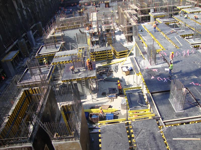 A new court building with adjacent parking structure is under construction in Al Farwaniya, a suburb of Kuwait City and will take up an area of 200,000 m2. The 20-storey Farwaniya Court Complex will comprise 80 court rooms, 23 conference rooms, offices and public facilities. The heterogeneous shape of the building with an inclined wall on the front elevation presented a particular challenge for Doka engineers. Valuable know-how and experience gathered during previous projects was incorporated from the start of the project so that the tough schedule could be met. Doka's own branch in Kuwait ensured just-in-time delivery as well as good engineering and sales support on site. Large-area formwork Top 50 and Column formwork Framax Xlife are used to form core and supporting walls. The Automatic climbing formwork SKE50 saves on costly crane use and time during construction of the building core. Pre-assembled Dokaflex tables are available for the floor formwork.