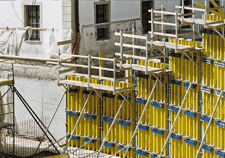 The practical height grid and the systematic spacing of the form-ties make it possible to form widely differing height-combinations quickly and easily.
