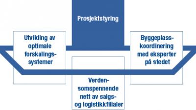 Hvert anleggsområde kjører en egen prosess fra planlegging til ferdigstillelse. Jo tidligere vi blir involvert, og jo bedre vi forstår prosjektet, desto bedre lønnsomhet oppnås. Vi følger gjerne kunden gjennom alle stadier av forskalingsprosjektet. Vi tilbyr nemlig en totalpakke bestående av produkter, tjenester, planlegging, prosjektstyring og logistikk. En slik forståelse av alle aspekter er det ikke mange som kan tilby.