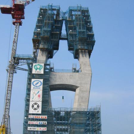Pilonul în formă de diamant şi cu o înălţime de 100m din Japonia a fost construit cu 16 unităţi autocăţărătoare SKE 100. Înălţarea s-a făcut în secţiuni de betonare de 5m înălţime. Din acest motiv intervalul de construcţie a durat doar aproximativ un an.