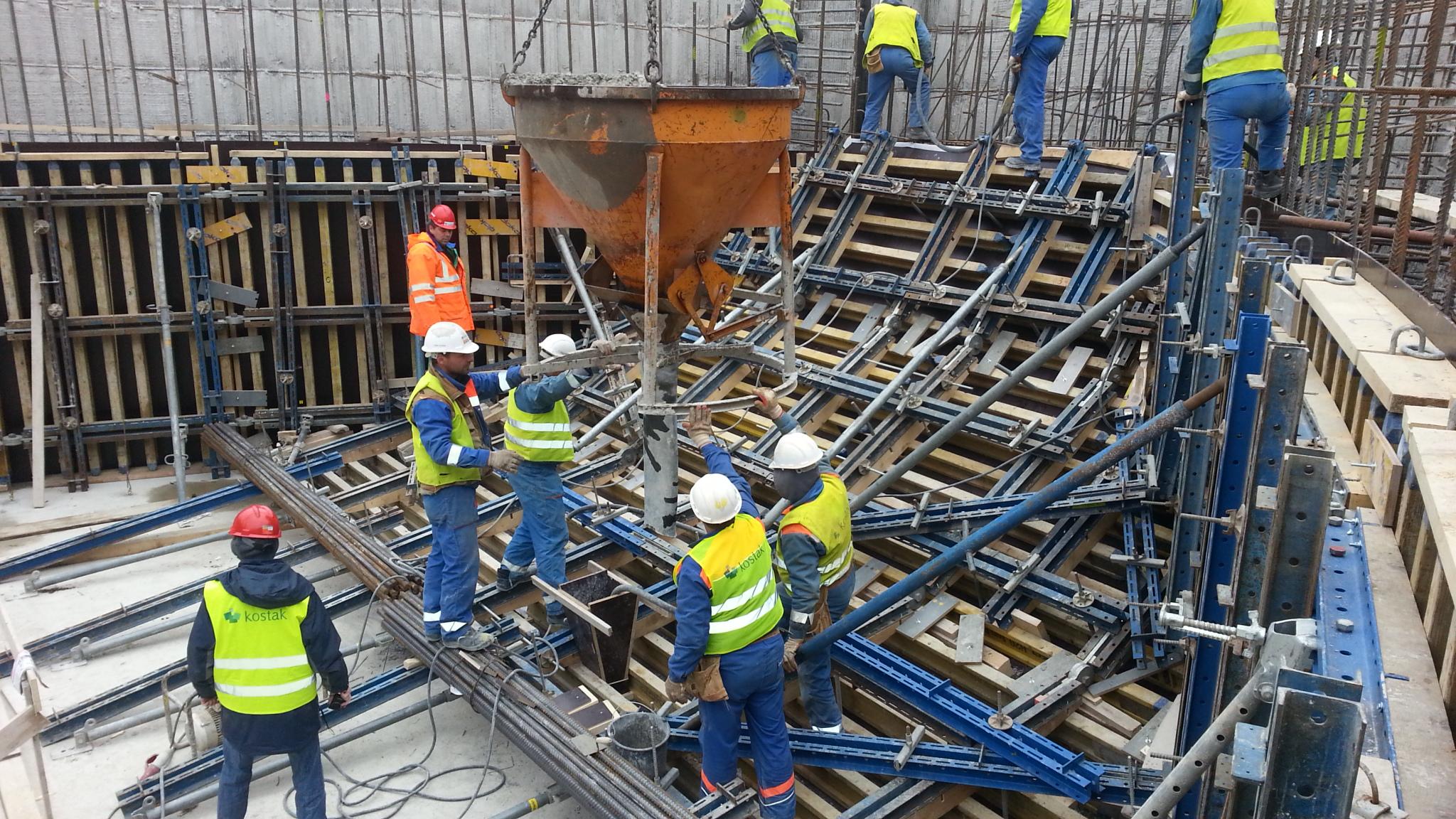 Podjetje Kostak d.d. Krško gradi strojnico, pri čemer uporablja podporne stolpe Staxo 100 in velikostenski opaž Top50. Prav poseben izziv pri gradnji strojnice je predstavljalo opaženje in betoniranje treh sesalnih cevi. Pri predhodnih gradnjah elektrarn na Savi je bila sesalna cev izvedena z železnim kalupom, ki je po betonaži ostal vgrajen v objektu. Zato je bila morebitna sanacija masivnega betona težja.