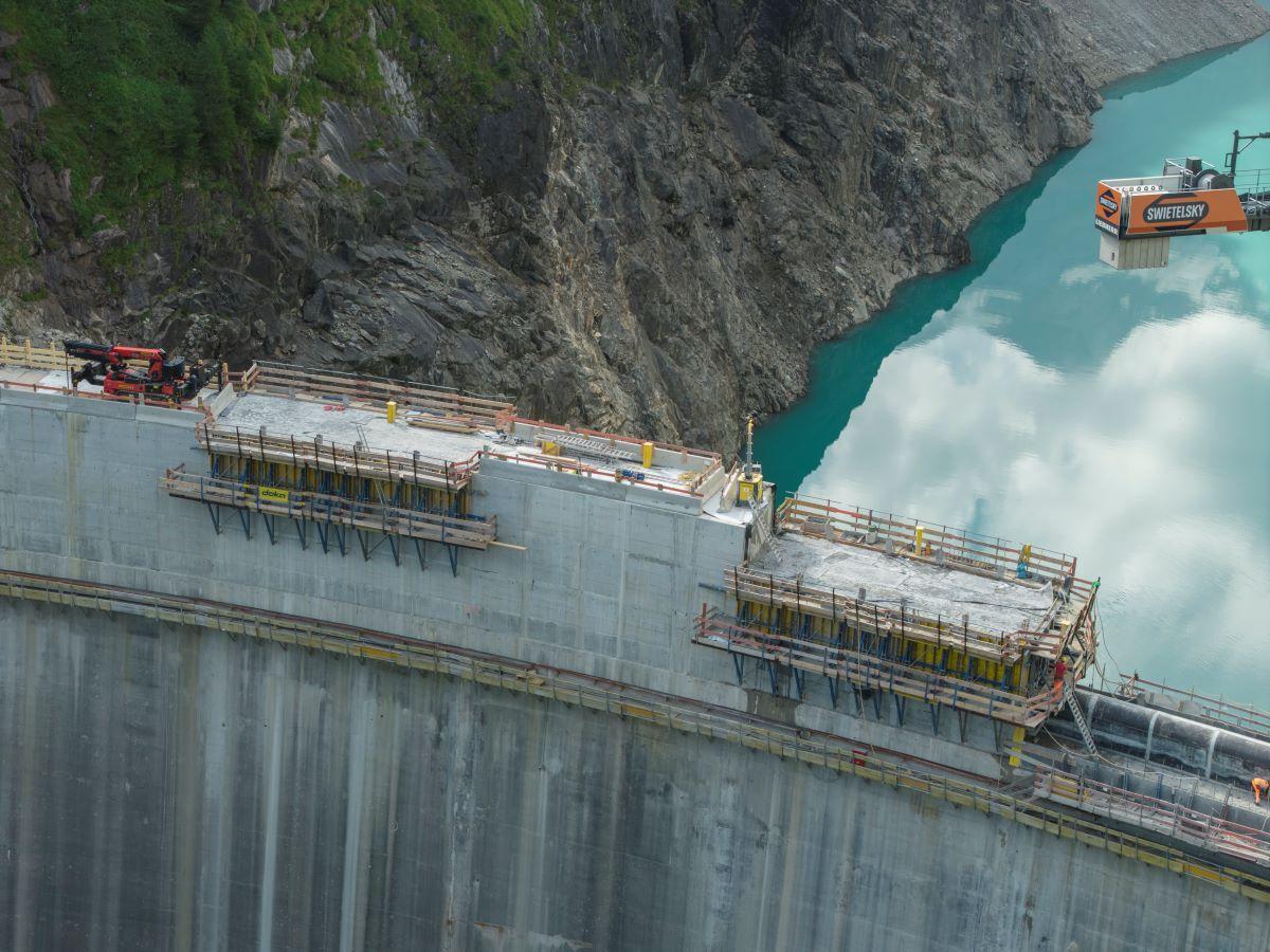 Dela potekajo na nadmorski višini 1.700 metrov – v okolju z nizkimi temperaturami pod lediščem, sunki vetra nad 100 km/h in izjemnimi logističnimi izzivi. Da bi uspešno obvladali te razmere, se VERBUND, vodilno avstrijsko elektroenergetsko podjetje, zanaša na strokovno znanje podjetja Doka pri gradnji jezov. S pomočjo 3D-načrtovanja, predmontaže in optimizirane logistike so bistveno pospešili faze betoniranja, saj so dosegli približno 260 m³ v samo treh dneh.