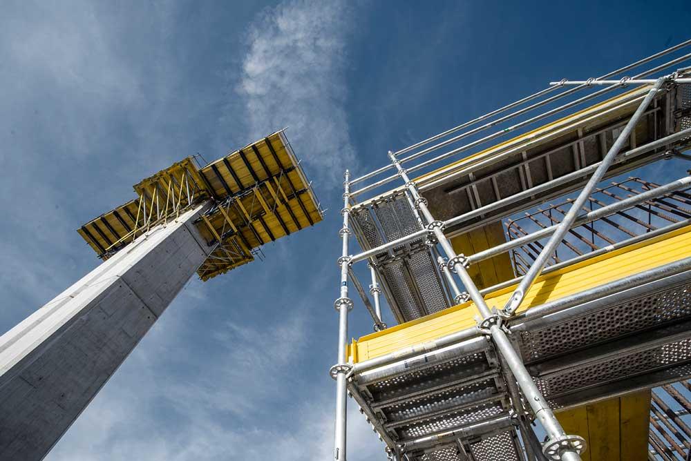 Робочі модулі риштування для безпечних і стабільних платформ, ідеально підходять для таких завдань, як в'язання арматури і заливка бетону. Доступні в попередньо встановлених конфігураціях, які можна переставляти на місці за потреби.
