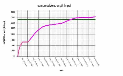 Freezing cold outside temperatures took the concrete longer to get the target strength value. Despite concrete curing and heating it took 17 days to strip the formwork.