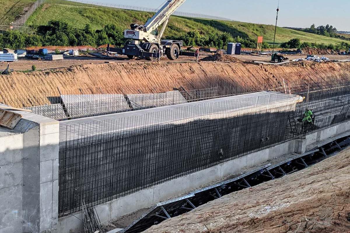 Charlotte Douglas International Airport is an international airport in Charlotte, N.C., and as of 2019, it was processing more than 50 million passengers. When it was determined that additional runways were needed at the airport, the City of Charlotte and the city's aviation department turned to reroute a creek to provide additional space. The Coffey Creek Tunnel is an ambitious project that will reroute an existing creek and then backfill the area for new taxiways. To do this, Doka provided four sets of foundation formwork so concrete contractor Briegan Concrete could always be actively pouring foundations. Doka also provided two sets of tunnel formwork – equaling four 70-foot-long tunnel forms – so Briegan could work in two different areas of the project. To help the customer understand the process, Doka built a mockup of the tunnel section so it could be seen in full scale. This was an advantage since it showed the customer how Doka could help them visualize the process and have a successful project.