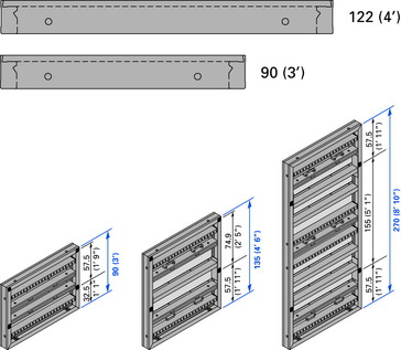 Framax Xlife universal panels are available in widths of 3' - 0" (90 cm) and 4' - 0" (122 cm) and in panel heights of 3'-0" (90 cm), 4' - 6" (135 cm), 8'-10" (270 cm).